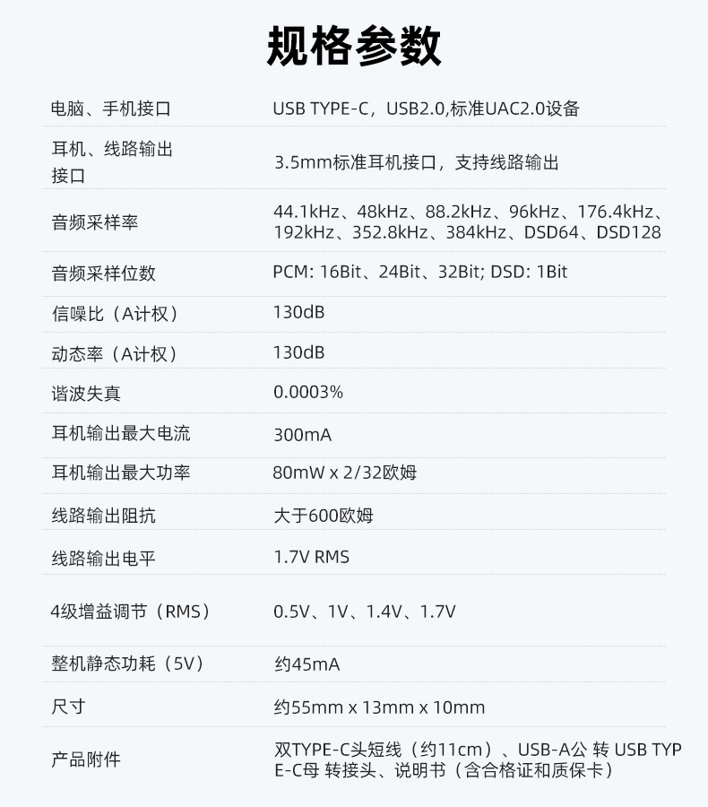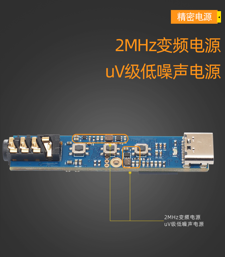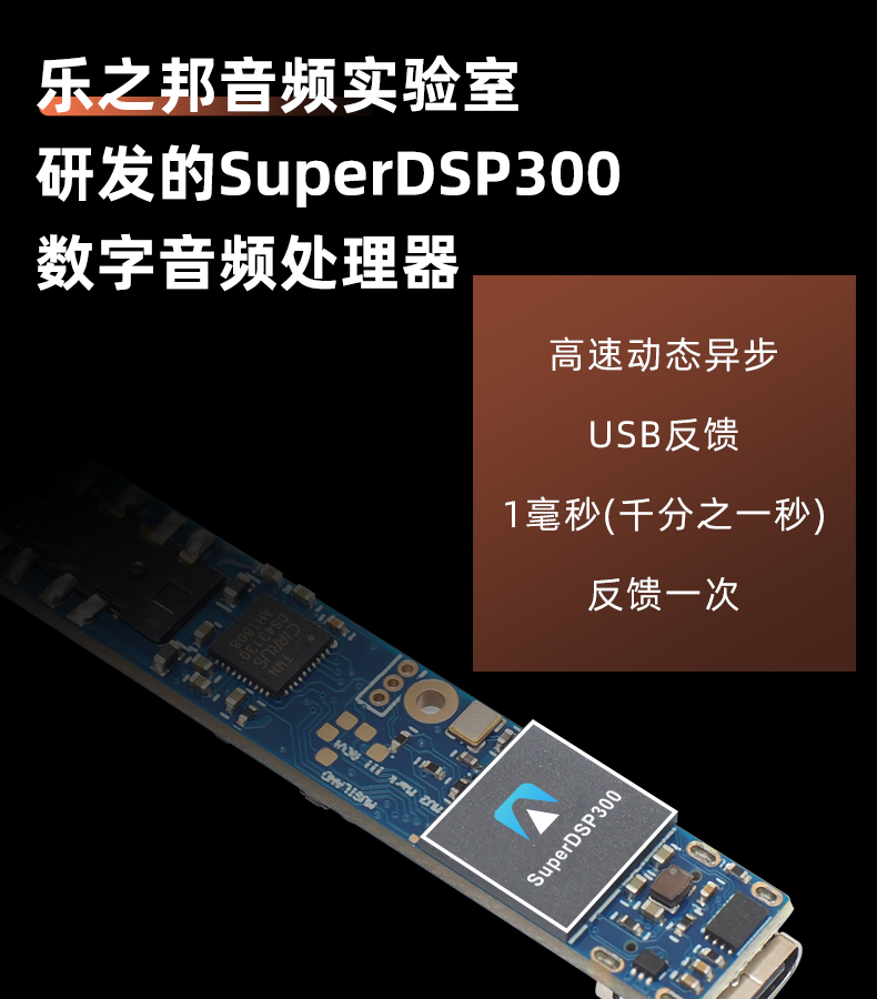 MU2 Mark III 使用了标准版的SuperDSP300处理器,搭配130dB的乐之邦定制版CS43130M解码芯片,配合多路精密电源,让手机秒变HIFI播放器。
