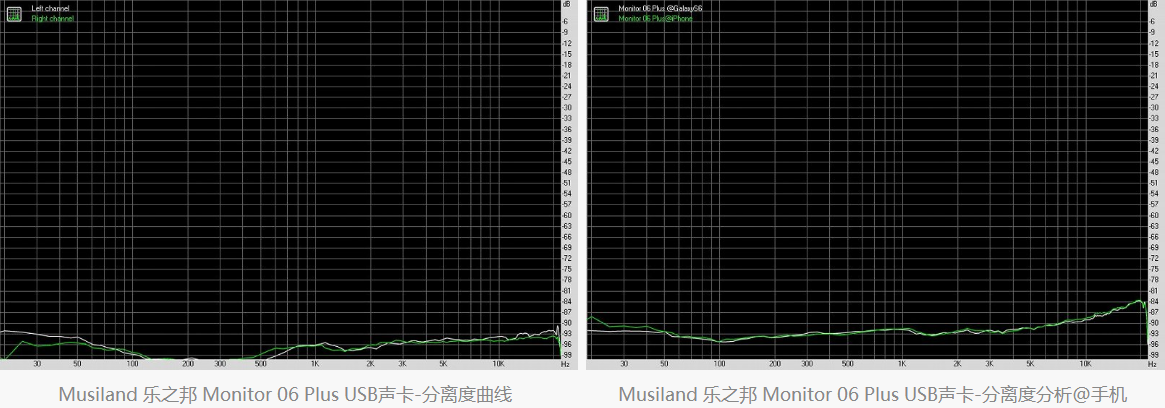 虽然从外接库伦表以及频率扫描监视来看,06Plus声卡仍然对电源品质敏感。06 Plus也没有内置电池,但找到一个客观指标上一点问题都没有的电源和电脑并不难,直接使用Galaxy S6e客观指标也毫无问题。而与以往的很多产品相比,06 Plus在连接手机时音质相比连接电脑时的下降幅度也小了很多。同为连接手机,06 Plus相比Mojo的优势还会放大不少[相比同连接电脑]。当然,在连接高灵敏度耳机甚至音箱功放时,06 Plus会有一些底噪,但目前推测底噪更多原因是来自于非平衡输出的复合接口[原厂转接线的RCA输出会比3.5mm接口更差]。而反馈称底噪太大,要用什么高档磁环USB线来改善的,说明你的电脑的USB供电实在是太差了,我们无法重现如此差的使用环境。