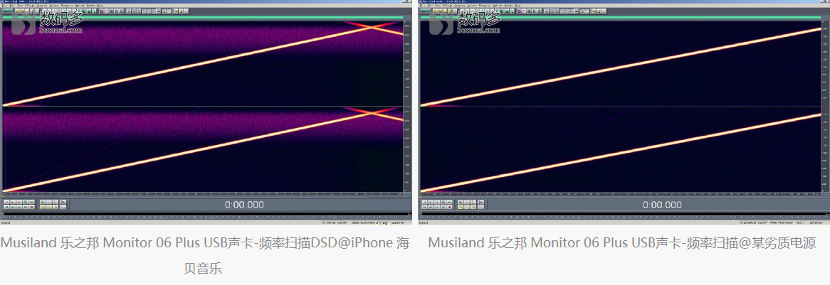 从客观测试来看,Monitor 06 Plus的RMAA测试成绩表现较好,但是和理论极限相比稍弱,配合RMAA频谱来看,高频部分有一些细密的小毛刺,据说这是SuperAMP芯片的特征。配合频率扫描来看,Monitor 06 Plus的声音背景确实不够黑,这也表现在连接一些高灵敏度耳机是会听到一点底噪。但值得一提的是,由于06 Plus的中间3.5mm接口复合了S/Pdif同轴输出。这在非Windows10驱动下可能会带来一点点数字信号造成的噪声[Windows10下可关闭,而且ASIO设备中S/Pdif输出是另外一个设备,与模拟输出独立,操作系统为同步工作]。而平衡输出接口是否可以避免这个噪声呢?我们买的转接线没有赶上这次测评,下次会谈到。
